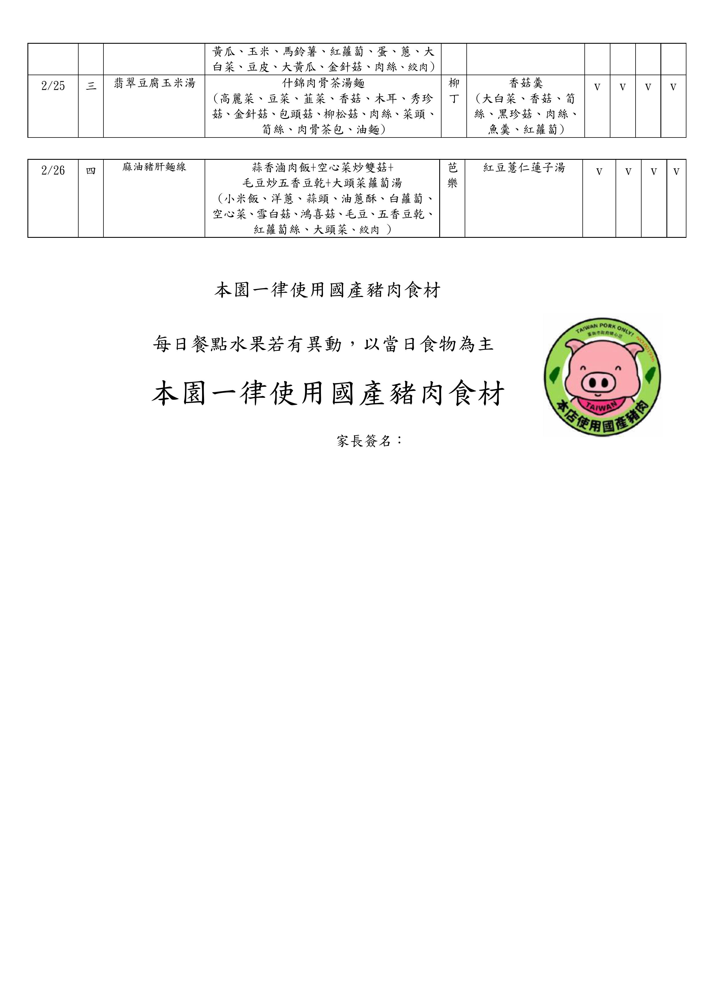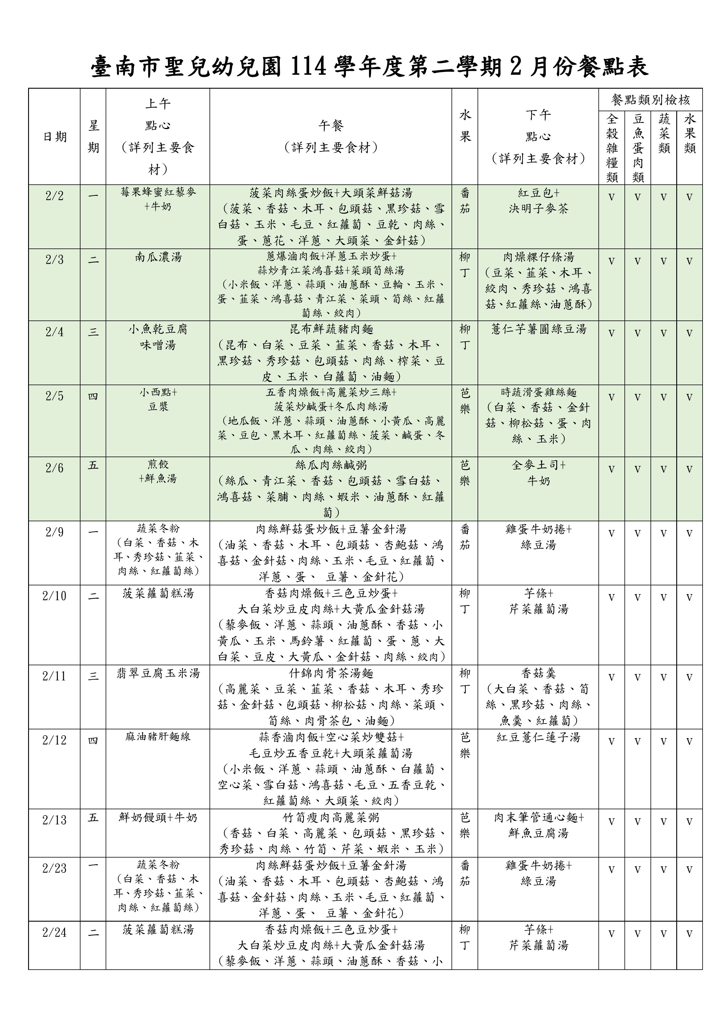 2月菜單